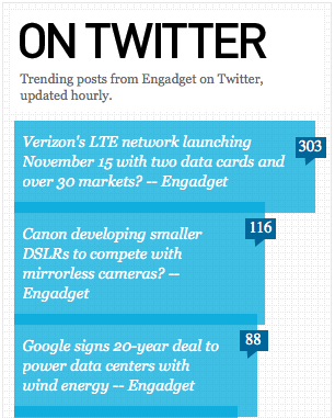 Here is a unique and creative way (left) that the blog Engadget uses Twitter as social proof (as well as a great way to direct visitors to popular content):