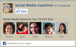 And Facebook is smart about it. They tailor the widgets to whoever is visiting your web page. In the example below, Social Media Examiner uses the Facebook “Like Box” in the