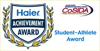 sented to a student-athlete for their accomplishments beyond sports. The announcement was made by John Homlish, senior vice president, Digital Living Business Unit for Haier America, one of the world’s leading television and appliance manufacturers, and Doug Vance, Executive Director of the College Sports Information Directors of America (CoSIDA).