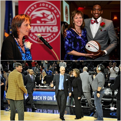After 10 years at Seton Hall, Wozniak was called home to become the assistant athletic director for communications at Saint Joseph’s, just a few miles from her alma mater and just across the Delaware River from where she grew up. She became and still is the primary media contact for the men’s basketball team (now with the title of associate athletic director for communications) and just happened to arrive on campus in 2003 when St. Joe’s was about to become “the” story of the college basketball season.