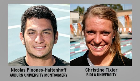 AUSTIN, TEXAS – – Senior Nicolas Pinones-Haltenhoff, a tennis player from Auburn University Montgomery, and senior Christine Tixier, a swimmer from Biola University, headline the 2015 Capital One Academic All-America® College Division Men’s and Women’s At-Large Team, as selected by the College Sports Information Directors of America (CoSIDA).