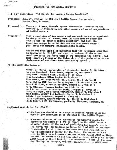 PDF of 1980 Proposal for Publicists for Women's Sports Committee
